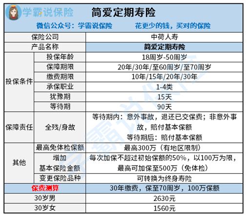 二、产品:简爱定期寿险值得推荐吗?学姐扒过中荷定寿后,大家知道公司没啥问题,总算可以对它放点心了。接下来,我们的重点讨论对象是它家寿险产品——简爱定期寿险。