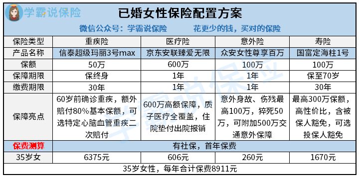 作为参考,学姐同样给大家做了一份保险配置方案: