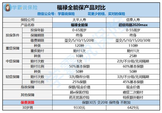 光说一家产品有点孤零零,我把重疾险届的明星产品“超级玛丽2020max”也请了出来。对比看看,谁能更胜一筹呢?