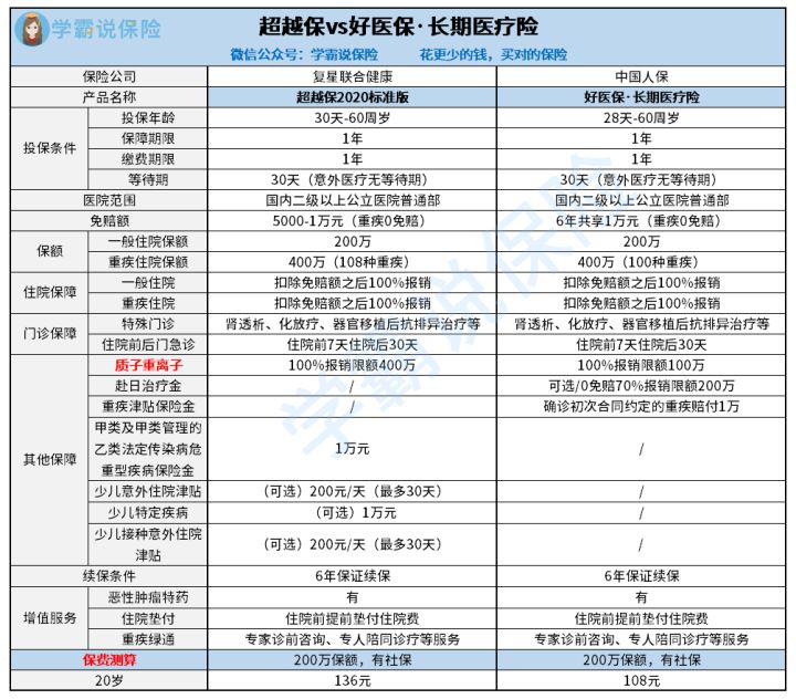 了解一款百万医疗险好不好,除了知晓本身的保障内容外,还需要跟其他热门产品进行对比才更有说服力,那么把好医保与超越保相对比,到底哪款好呢?大家先来看看两者的产品对比图: