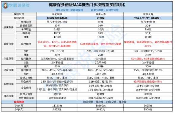 多次赔付的重疾险在市场上有很多款,健康保多倍版与他们相比,是更强还是更弱,学姐今天挑选出其中的两款来比较下,看看是谁打败谁!