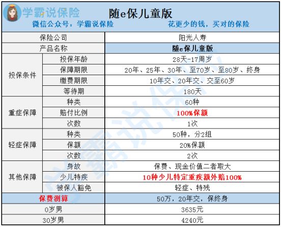 很多人都非常热衷于大公司的产品,那么今天我们要来分析的就是大公司的产品,阳光人寿的少儿重疾险:随e保少儿版!