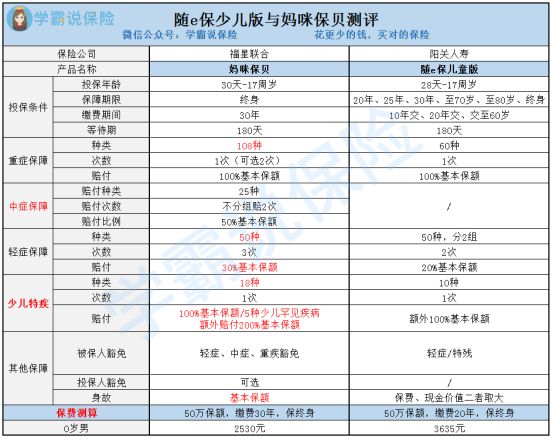 在重疾赔付这一关,妈咪保贝的保障无疑比随e保少儿版更全面。