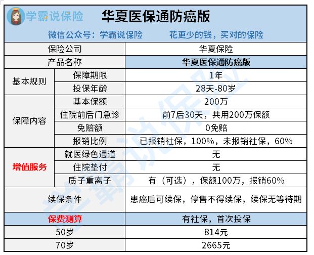 价格方面,区别不是很大,甚至于70岁投保的话华夏医保通还更贵。