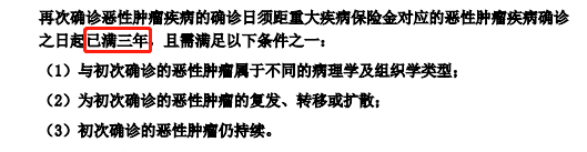如图所见,达尔文3号的恶性肿瘤再次赔付条款是比较宽松的,间隔期为3年。
