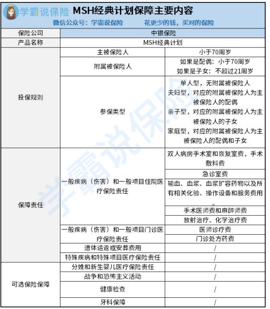 MSH经典医疗计划是一款由中银保险承保,MSH公司提供服务的团体高端的医疗险,服务好保障足,但同时保费昂贵,正因为如此很多人都报以谨慎的态度,为了消除大家的怀疑,今天先从公司背景触发,再测评产品,是不是很全面很贴心呢~
