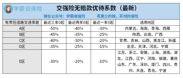 也就是说,连续3年内不发生有责交通事故,部分地区的保费最高优惠50%,那就是475元!这不是肉眼可见的大降价?详细的区域划分见下表: