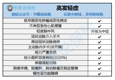 轻症虽然是大病的早期阶段,但也是十分需要得到保障的阶段,因为若是没有得到及时的治疗,便可能恶化成大病,更难治愈,所以在购买重疾险时候,我们要看产品的高发轻症病种是否覆盖全面,具体该怎么看,学姐在这篇文章里都写清楚了: