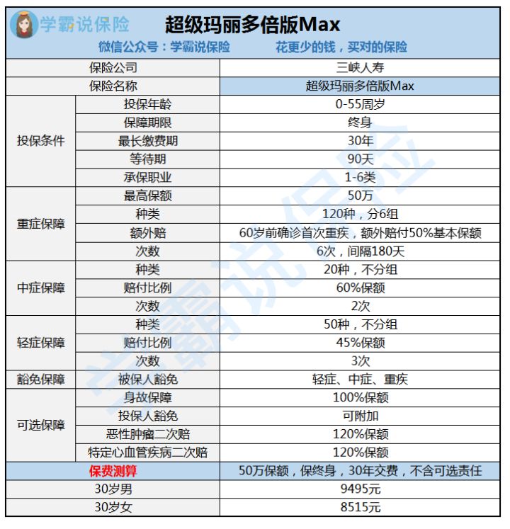 超全!超级玛丽多倍版Max和全国热门的136款重疾险对比表weixin.qq.275.com