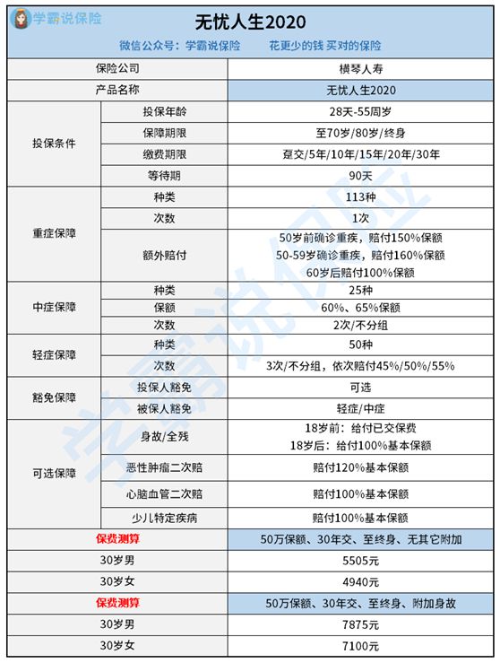 与市面热门重疾险相比,无忧人生2020值不值得买?