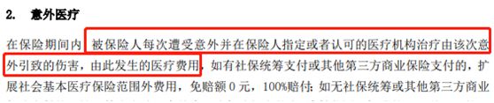 也就是说,不管你是打球崴脚、被开水烫伤,还是跑步扭到腰等等,只要是意外治疗产生的费用,在经过社保报销后,都可以通过意外医疗进行100%报销。