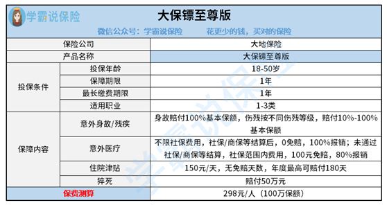 所以当你带着这几个判断指标,再去看大保镖意外险时,一眼就能看出它好不好了:
