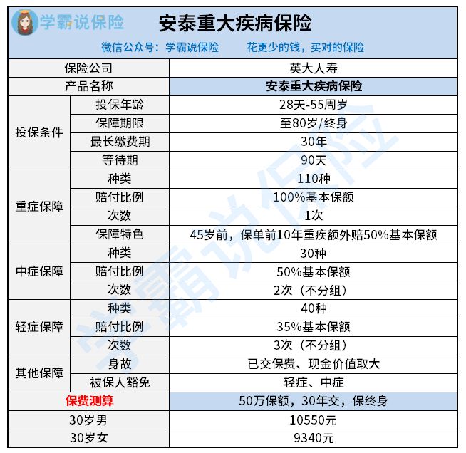 如果保费预算不足,且追求产品性价比的话,那么英大安泰重疾险不是最优的选择,可以再去了解一下其他重疾险产品。