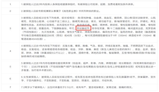 假如你患了健康告知中的疾病,比如上图中的甲状腺结节,这时你想投保的话,就要进入核保阶段。