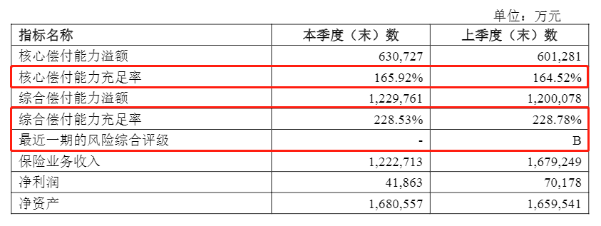 数据显示,中华联合财产保险股份有限公司2020年第三季度的核心偿付能力充足率为165.92%,综合偿付能力充足率为228.53%,风险评级为B类,完全符合国家要求: