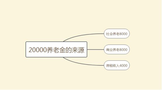 我们以退休后的养老金为20000块钱为例,应该怎么配置养老保险呢?如下图:
