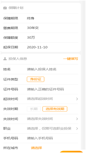 当我们核保通过后,就可以填写自己的相关信息了,大致是这样: