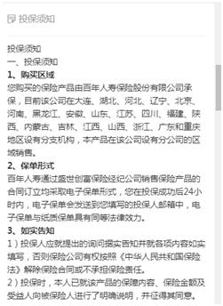 当你看完一款产品的基本信息后,如果你有了投保意愿,就要进入下一个环节—投保须知。