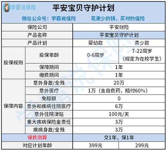 平安宝贝守护计划早在两个月前小朋友们开学时就有很多家长来咨询学姐了,学姐那时候也做了很多像学平险等这类型产品的深度测评,大家可以移步下文了解: