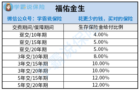 可以看到分为5年期交费,给付生存保险金的比例相对较高。