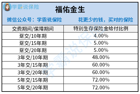 特别给付生存金给付比例最高可达72%,因此相应的选5年期交,给付比例更高。