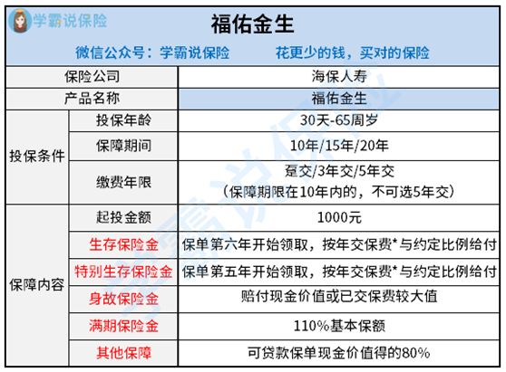 福佑金生是由海保人寿推出的年金险产品,是一款快返型的年金险,在投保后的第五年就可以领取年金了,我们来看看产品的基本形态。