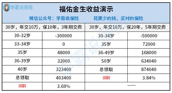 整体算下来,内部收益率达到3.84%,可以看出保障期限越长,收益率相对较高。
