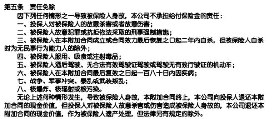 >>免责条款多:免责内容其实就是出险也不赔钱,所以当然希望越少越好,市面上高性价比的寿险免责条款只有3条,而这款产品的免责条款居然有8条,还是比较多。
