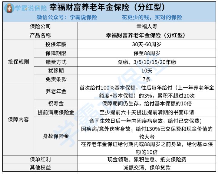学姐已经制作好一份关于幸福财富养老年金保险(分红型)的产品图: