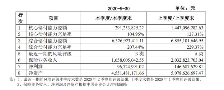 幸福人寿2020年第3季度的偿还能力报告如下: