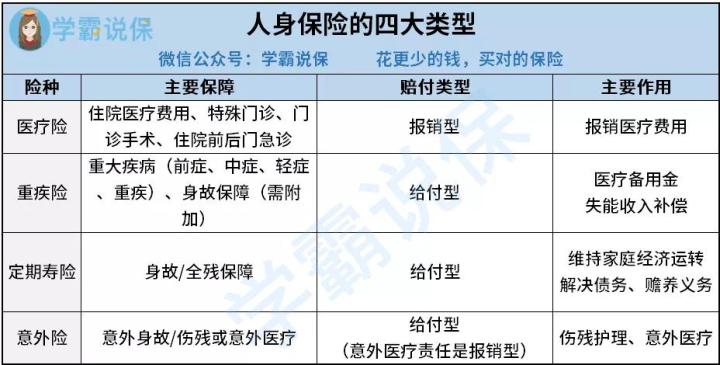 大家先来看看学姐整理的这张四大商业保险内容图,方便下文的理解: