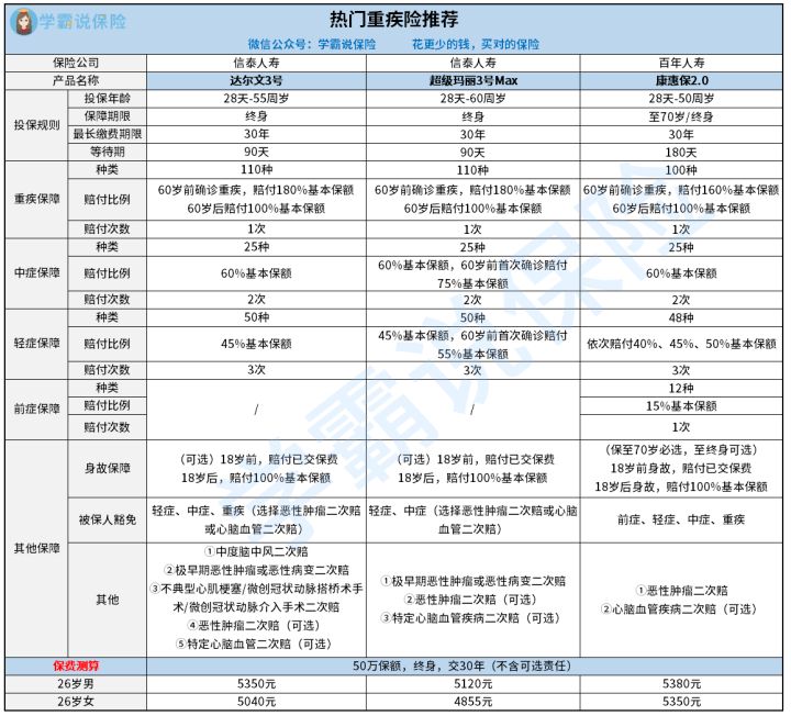 二、26岁买这几款重疾险最划算!