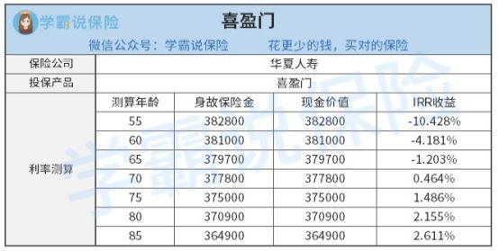 我们用IRR这个照妖镜来看看华夏喜盈门年金保险的万能账户收益到底划不划算。