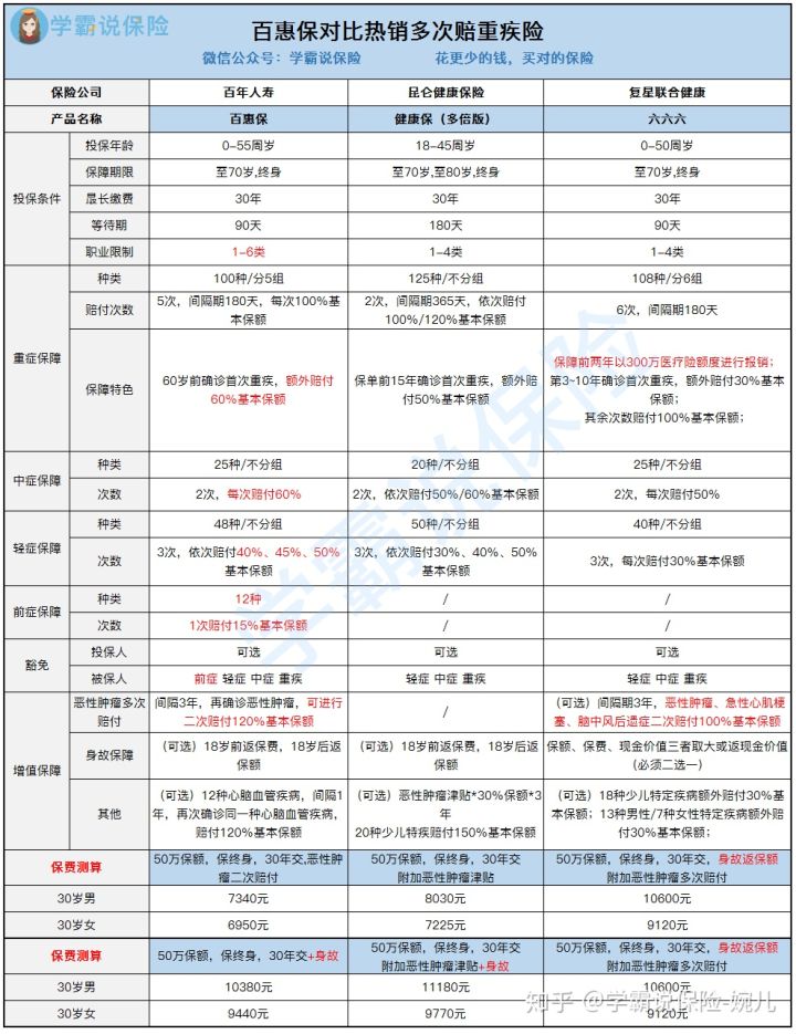 在保费的对比上:百惠保>守卫者3号>六六六四、总结从这三款多次赔付的重疾险的几个对比维度来说,最终表现最好的是百惠保。