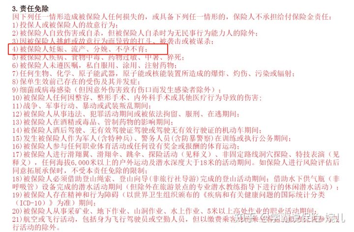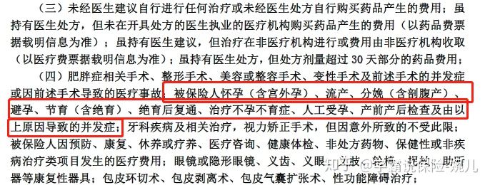 这是我在某款医疗险的条款中找到的,被保险人怀孕、流产、分娩、产前产后检查等等的责任都是不保的。