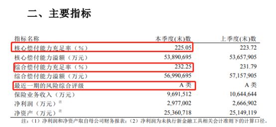 偿付能力是衡量一家保险公司偿还债务能力的重要指标,主要包括核心偿付能力充足率、综合偿付能力充足率和风险综合评级。