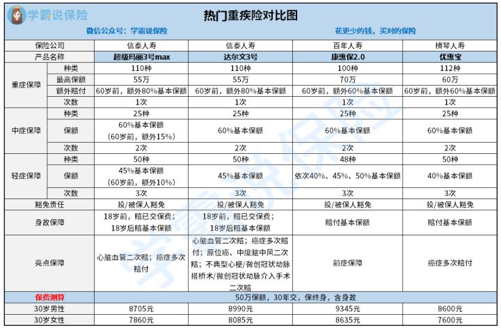 那么,今天学姐就热门的这几款重疾险进行对比测评,更好帮大家买对产品,废话不多说,赶紧看去吧!