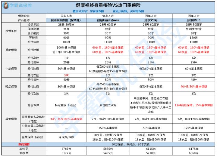 健康福终身重疾险是由国华人寿承保的重疾赔1次、中症赔3次、轻症赔3次的重疾险产品,那么保障怎么样?有什么优缺点呢?学姐给大家分析一下: