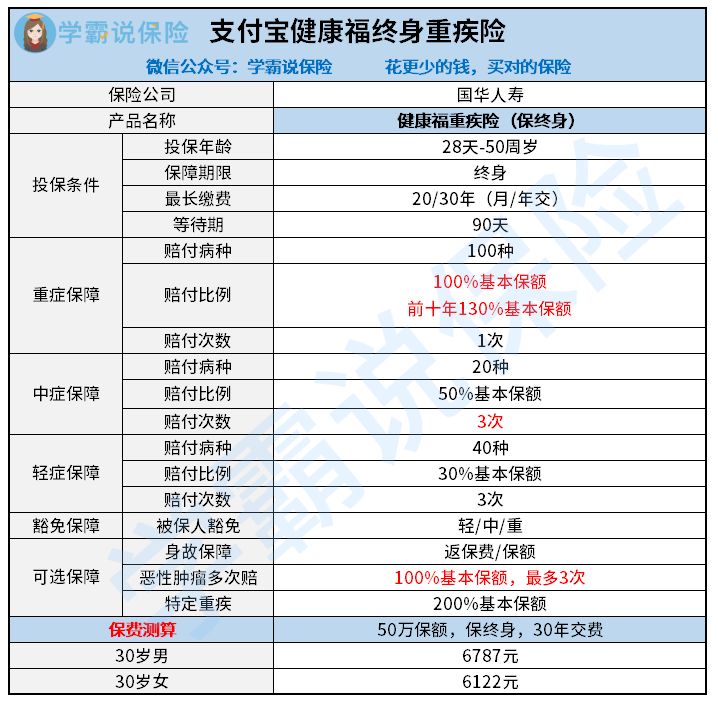 支付宝中的重疾险产品是健康福系列,其实是有4款产品,由3家保险公司分别承保,我们以健康福终身重疾险产品为例,分析它的保障到底怎么样?话不多说,直接上精华图: