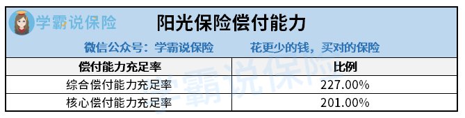 根据阳光保险2020年上半年度偿付能力季度报告显示,阳光保险的综合偿付能力和核心偿付能力均超过200%,实力可以说是非常强劲了。