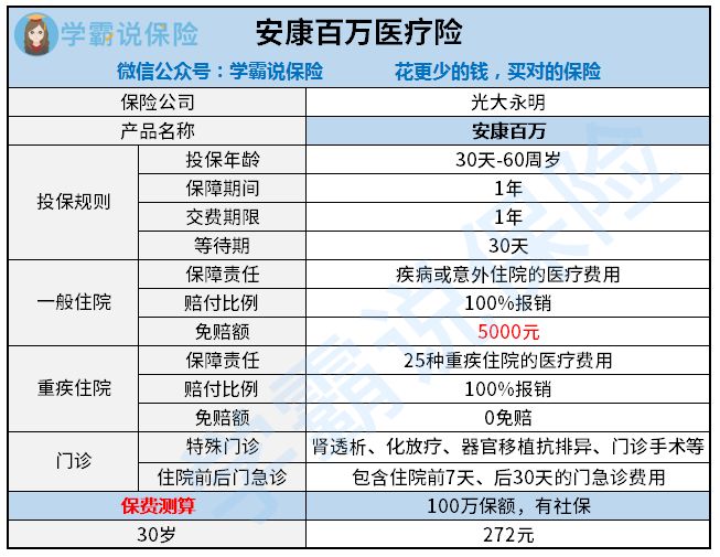 安康百万医疗险是光大永明推出的百万医疗险产品,保障内容怎么呢,先来看看精华图: