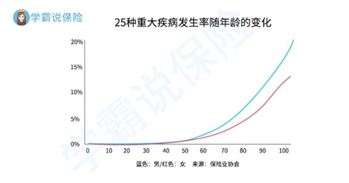 因为年纪越大,罹患重疾的风险越大。